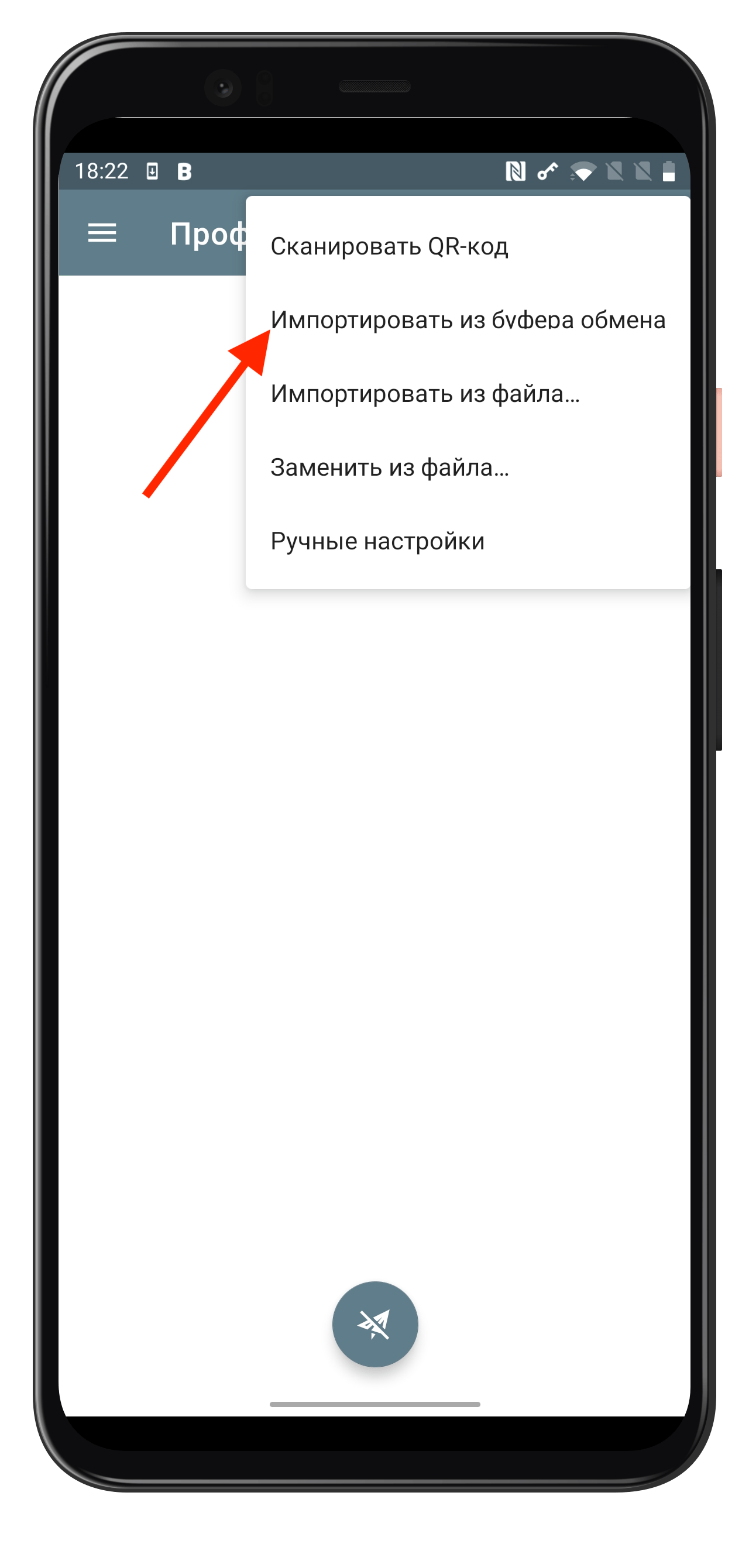 Выберите пункт «Импортировать из буфера обмена», чтобы вставить ключ, который вы скопировали из личного кабинета.