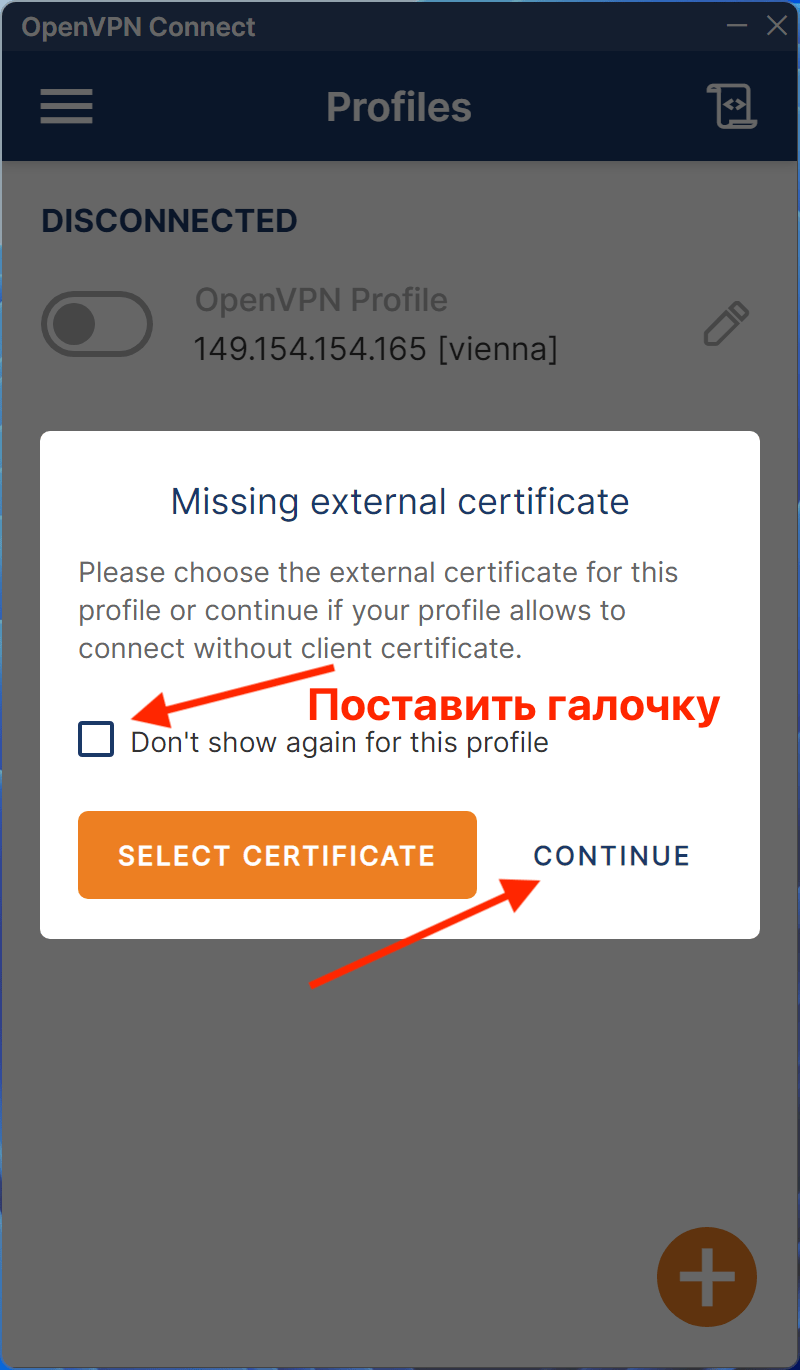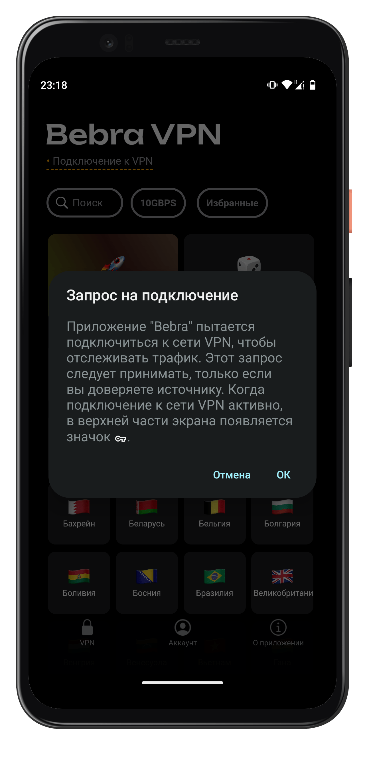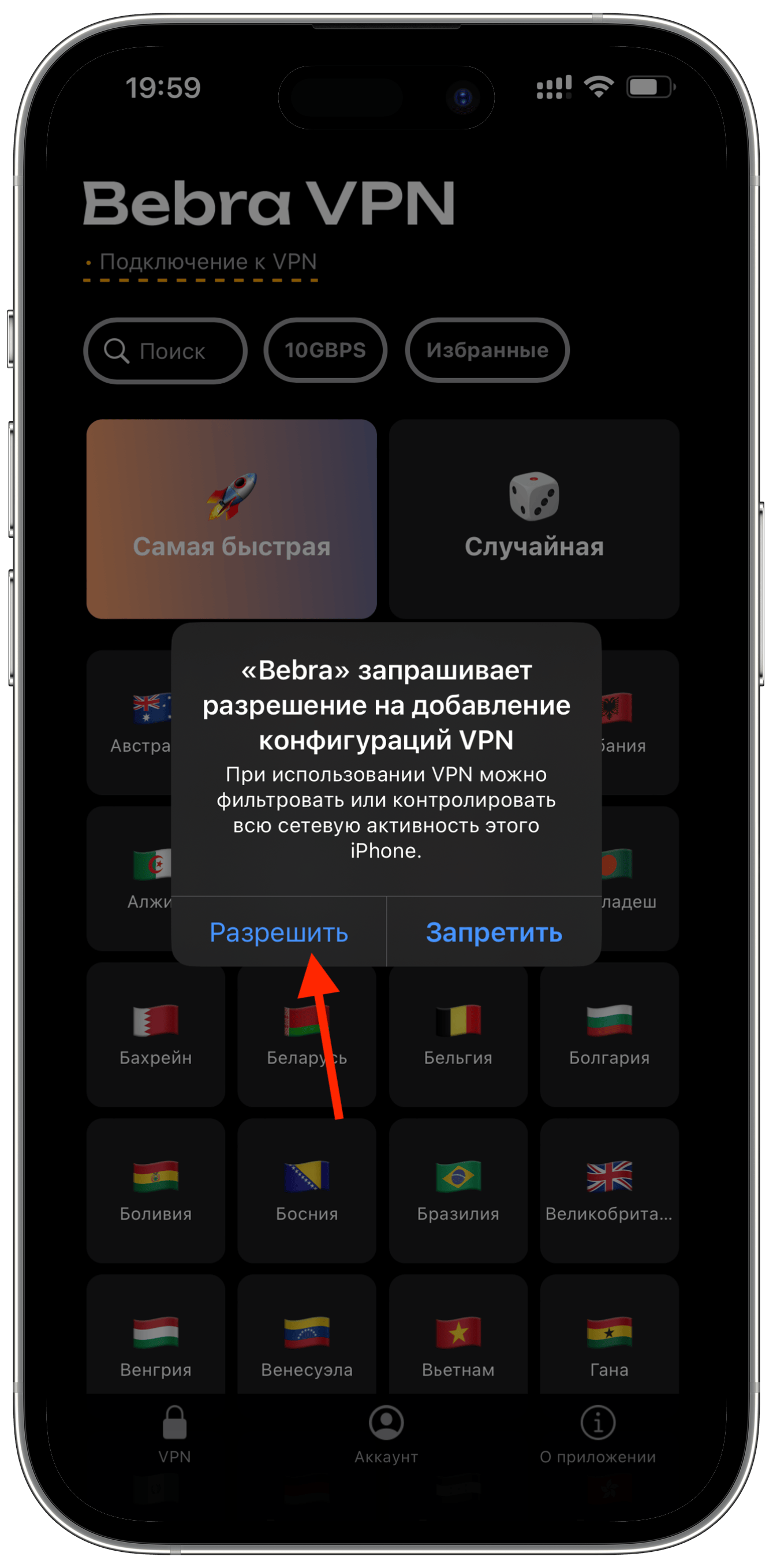 При первом подключении приложение попросит добавить VPN-профиль в систему.