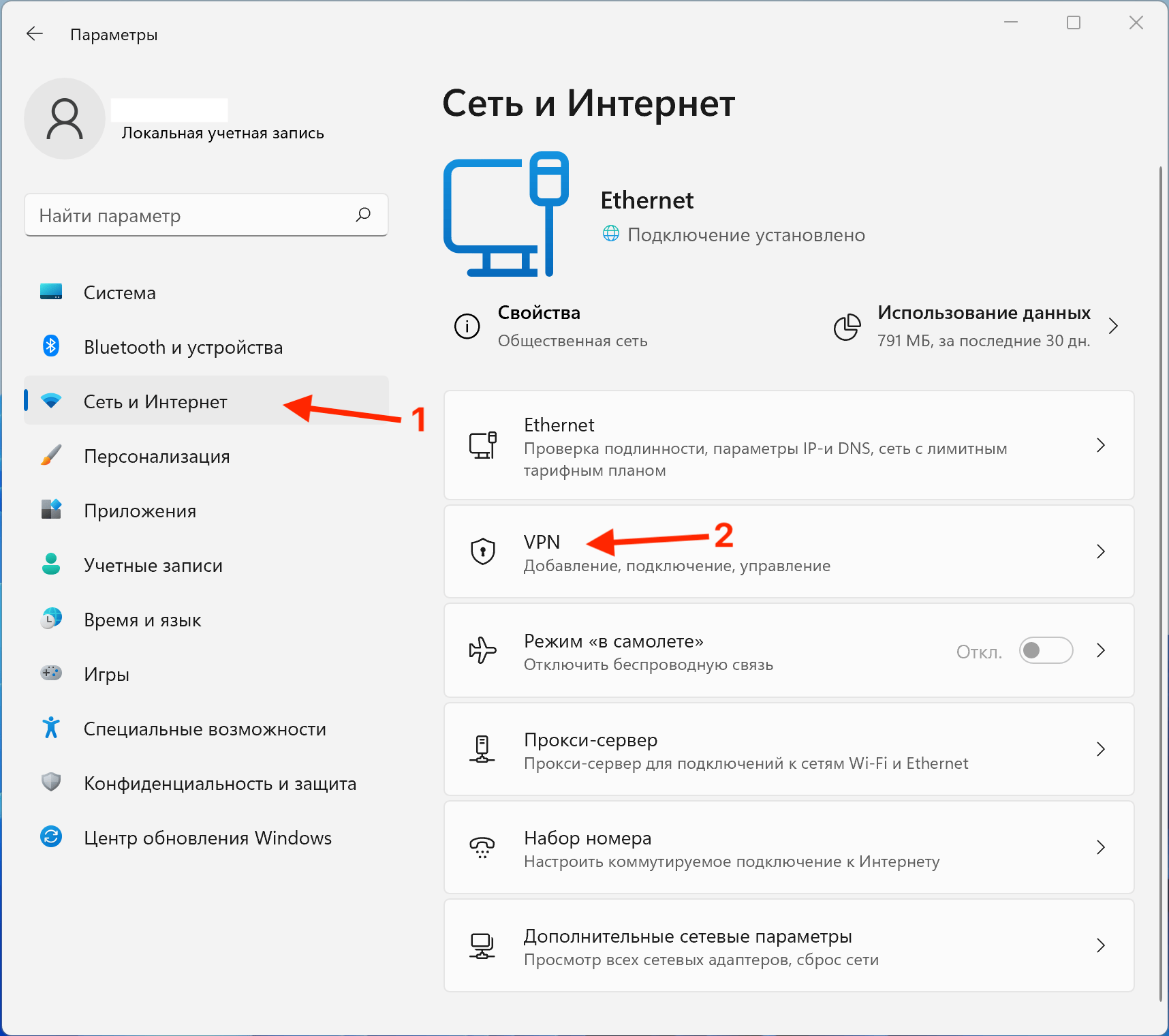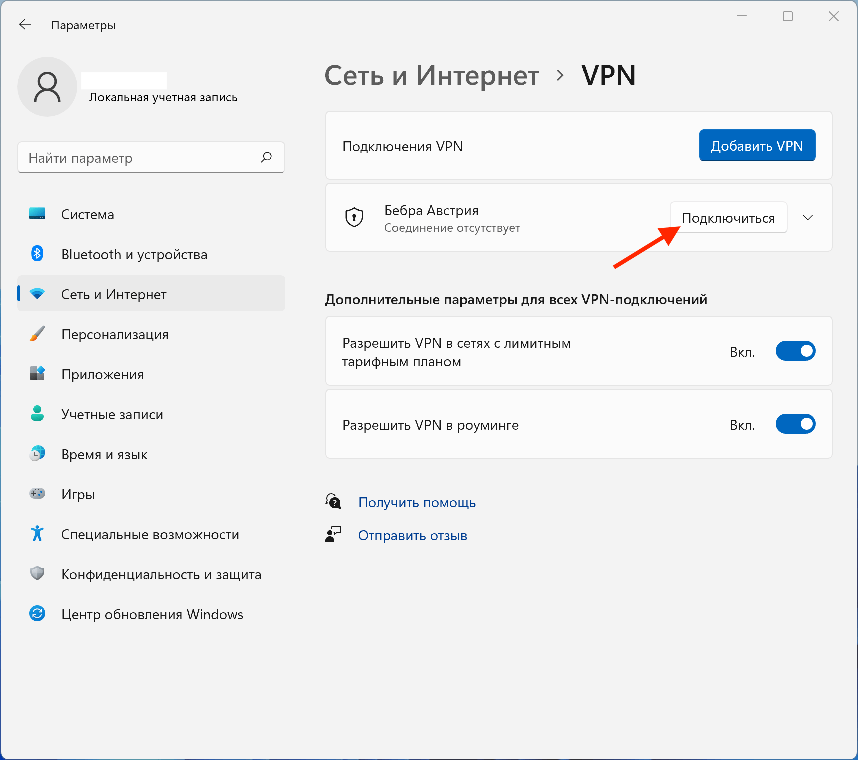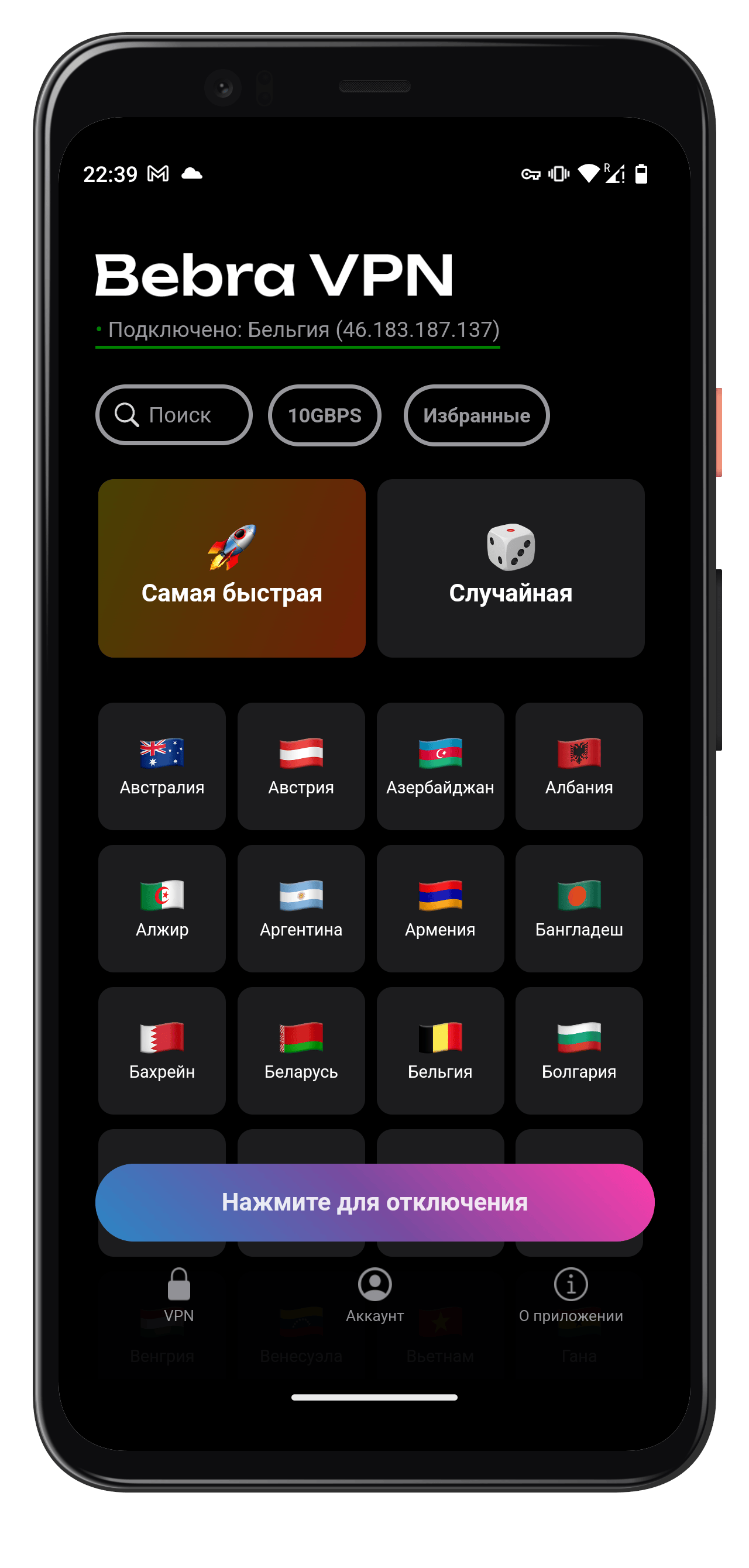 Нажав на иконку с самолётиком, вы можете включить VPN.