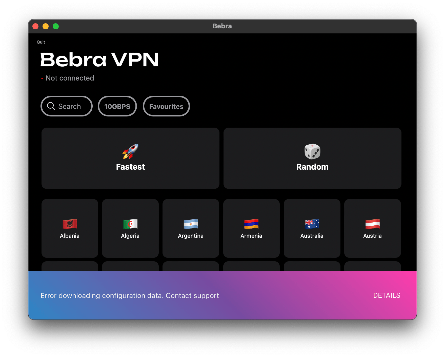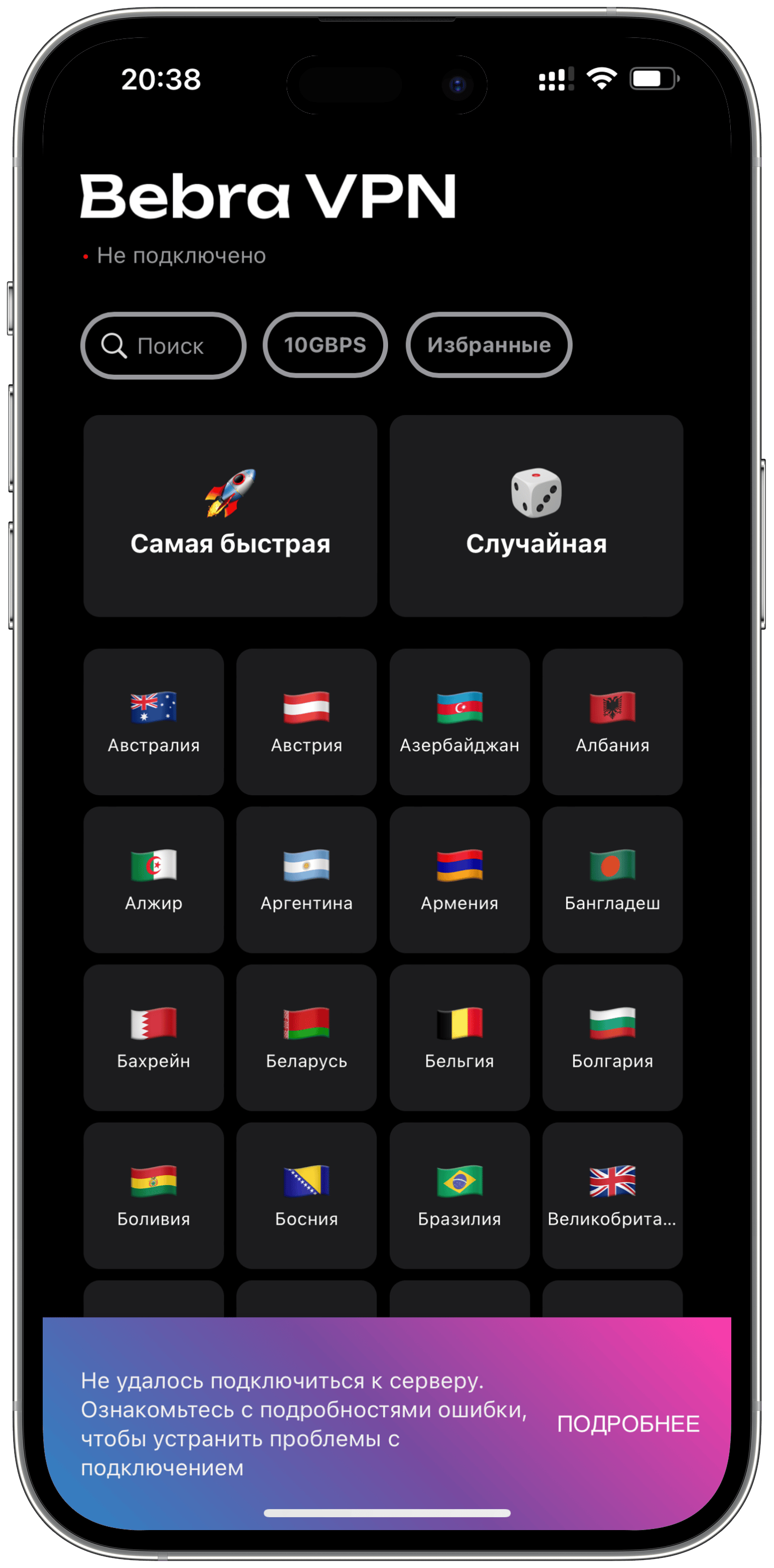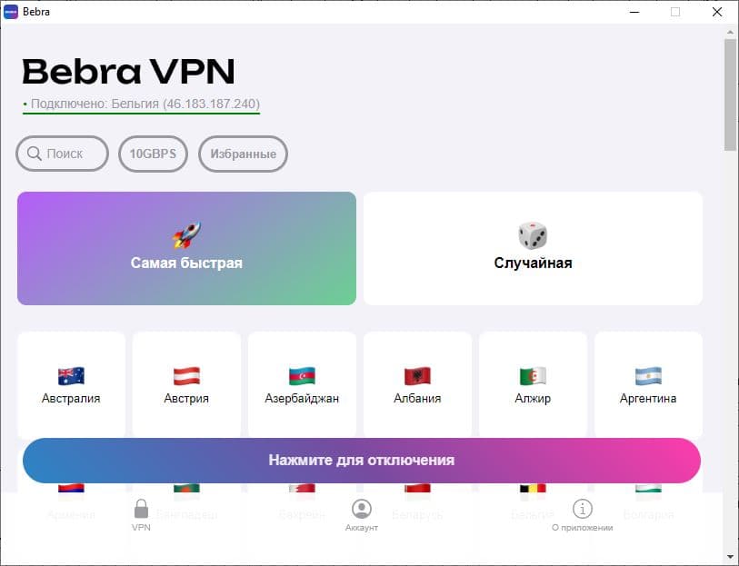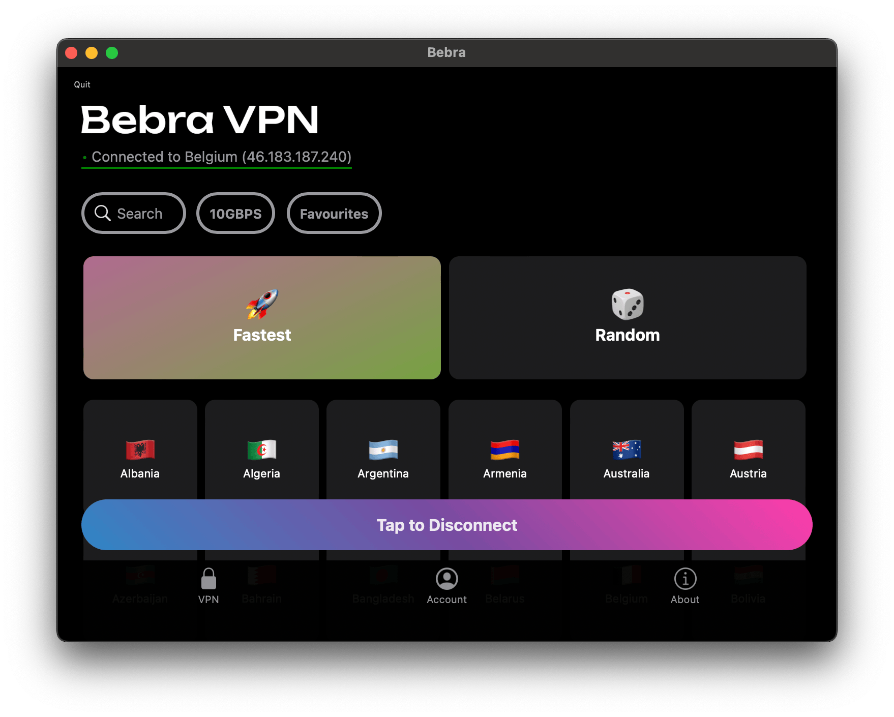 Компания Apple скрывает VPN-приложения для России и Китая. Это легко обойти, используя аккаунт App Store других регионов. Для пользователей Бебры из России и Китая мы бесплатно предоставляем временный иностранный аккаунт App Store, чтобы вы могли скачать наше приложение на iPhone, iPad или macOS.