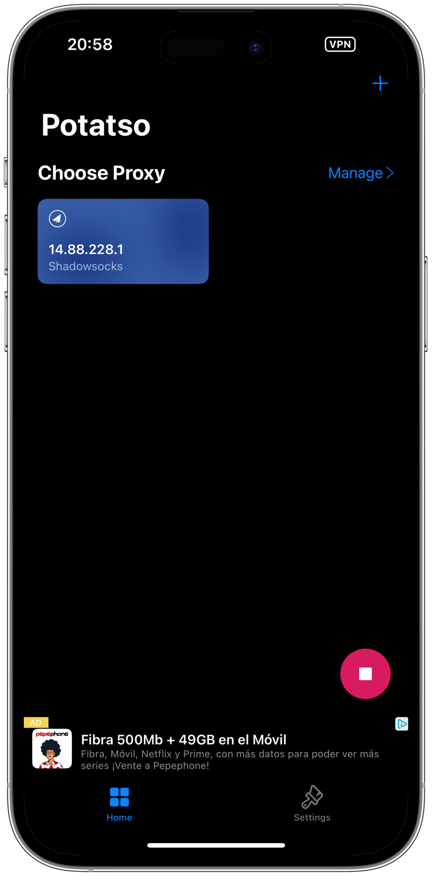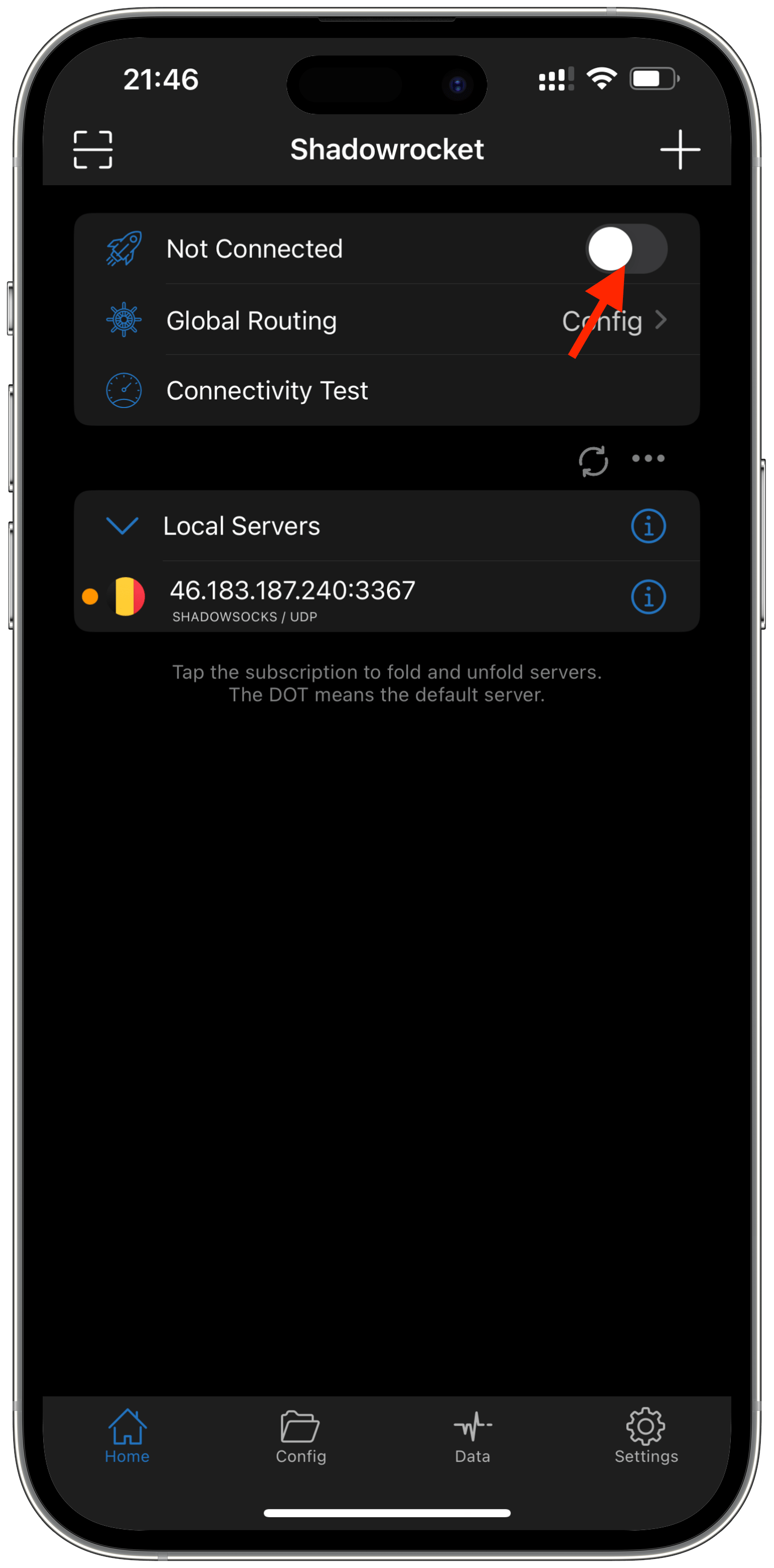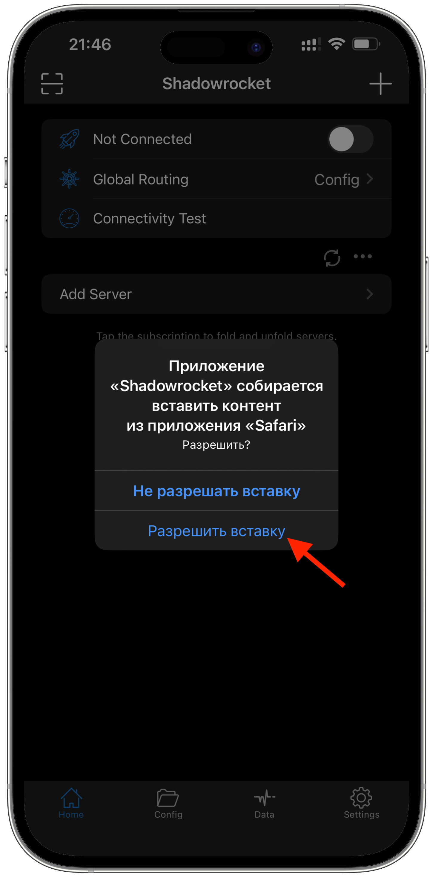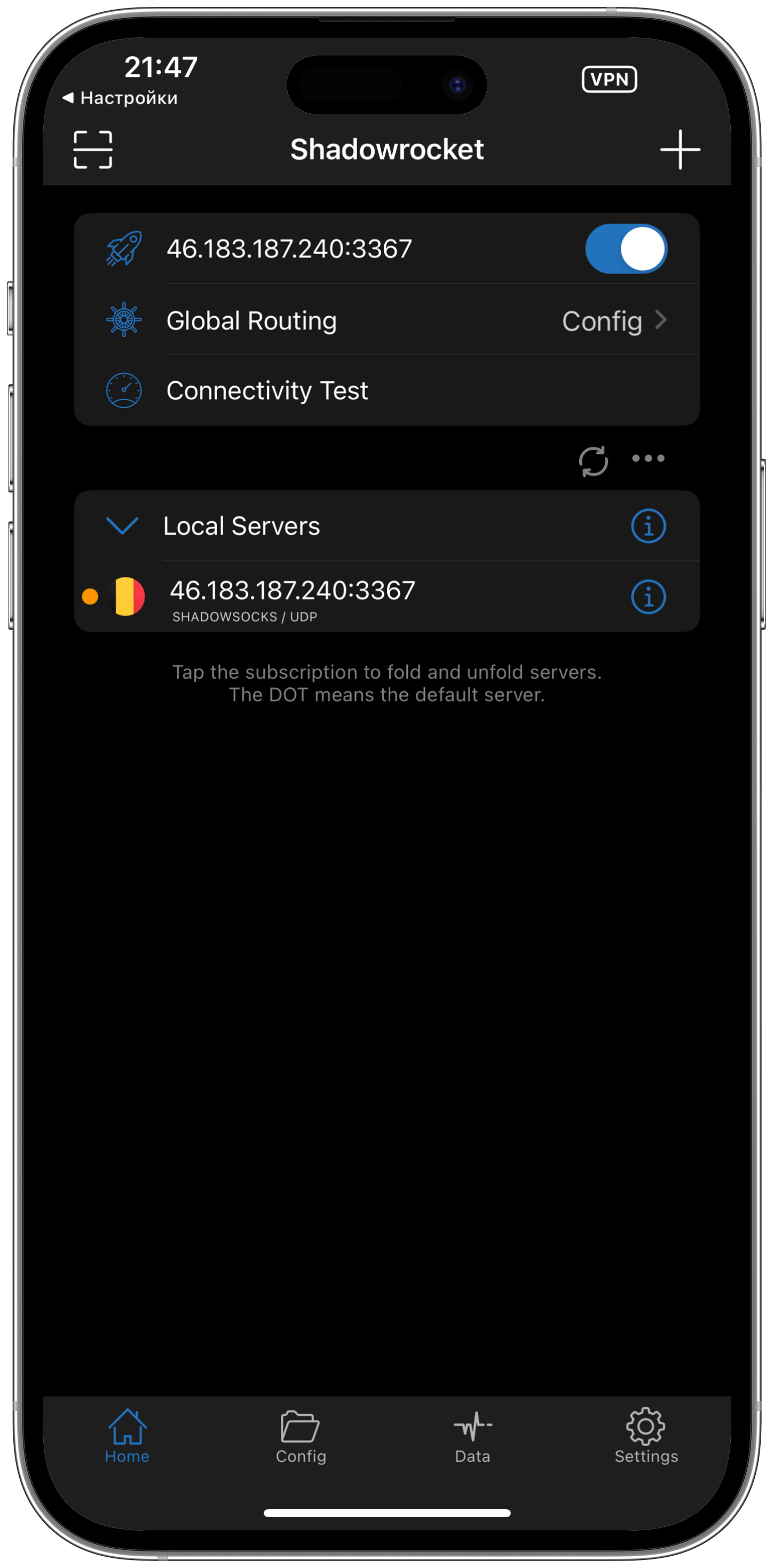 Вы подключились к VPN Бебры через приложение Shadowrocket.