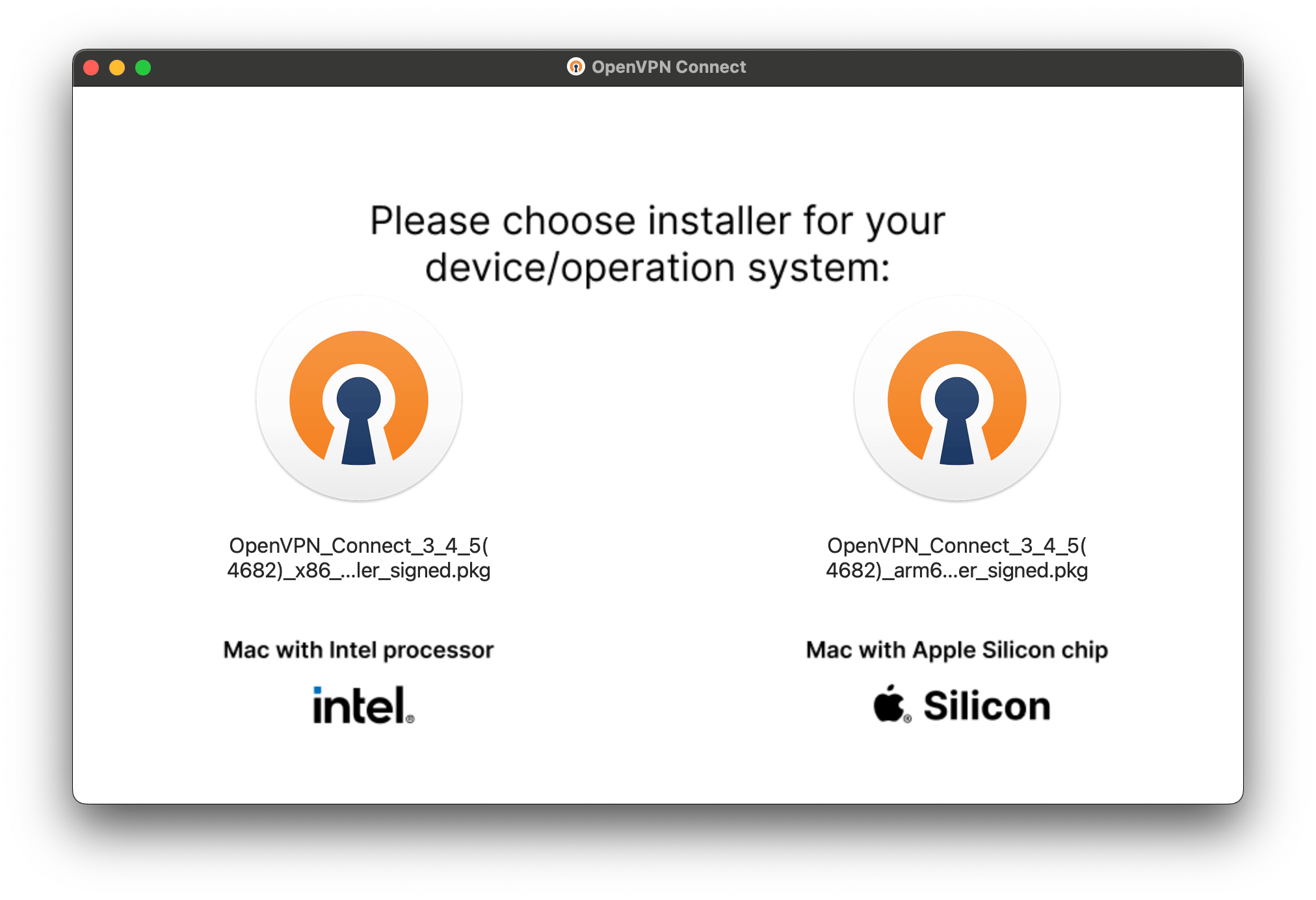 В зависимости от вашего процессора, установите приложение для процессоров Intel или для процессоров Apple M-серии.