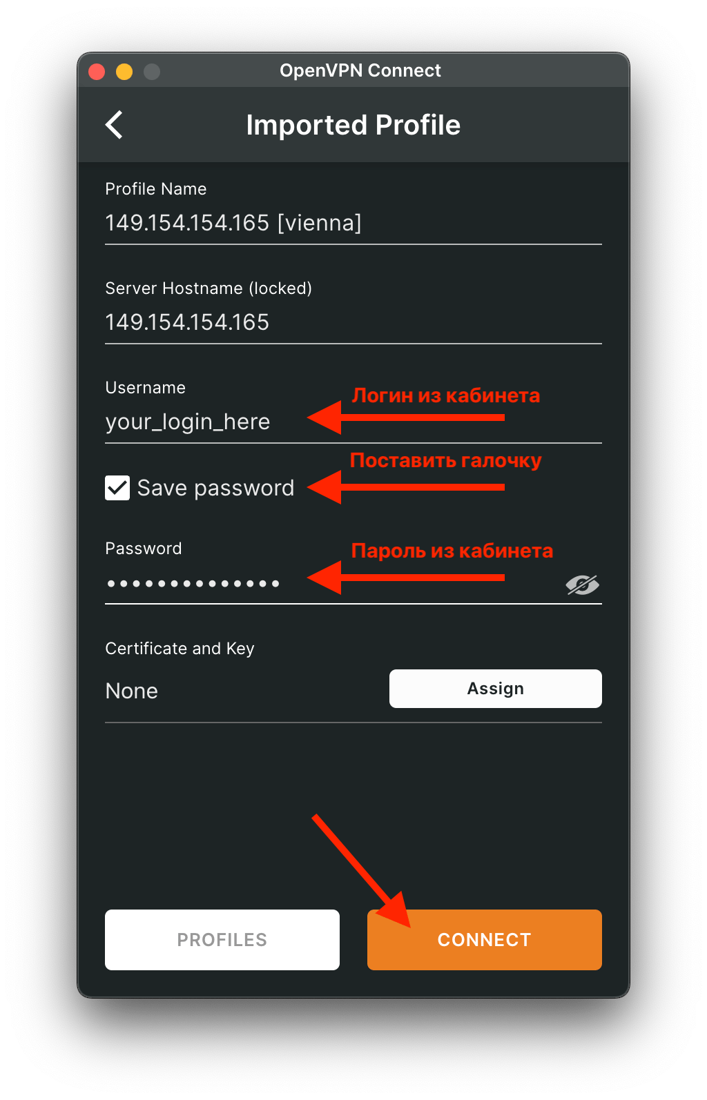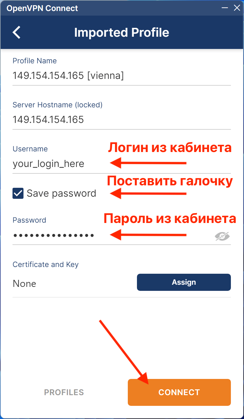 В 99% случаев после этой процедуры вы сможете подключиться через наше приложение.
