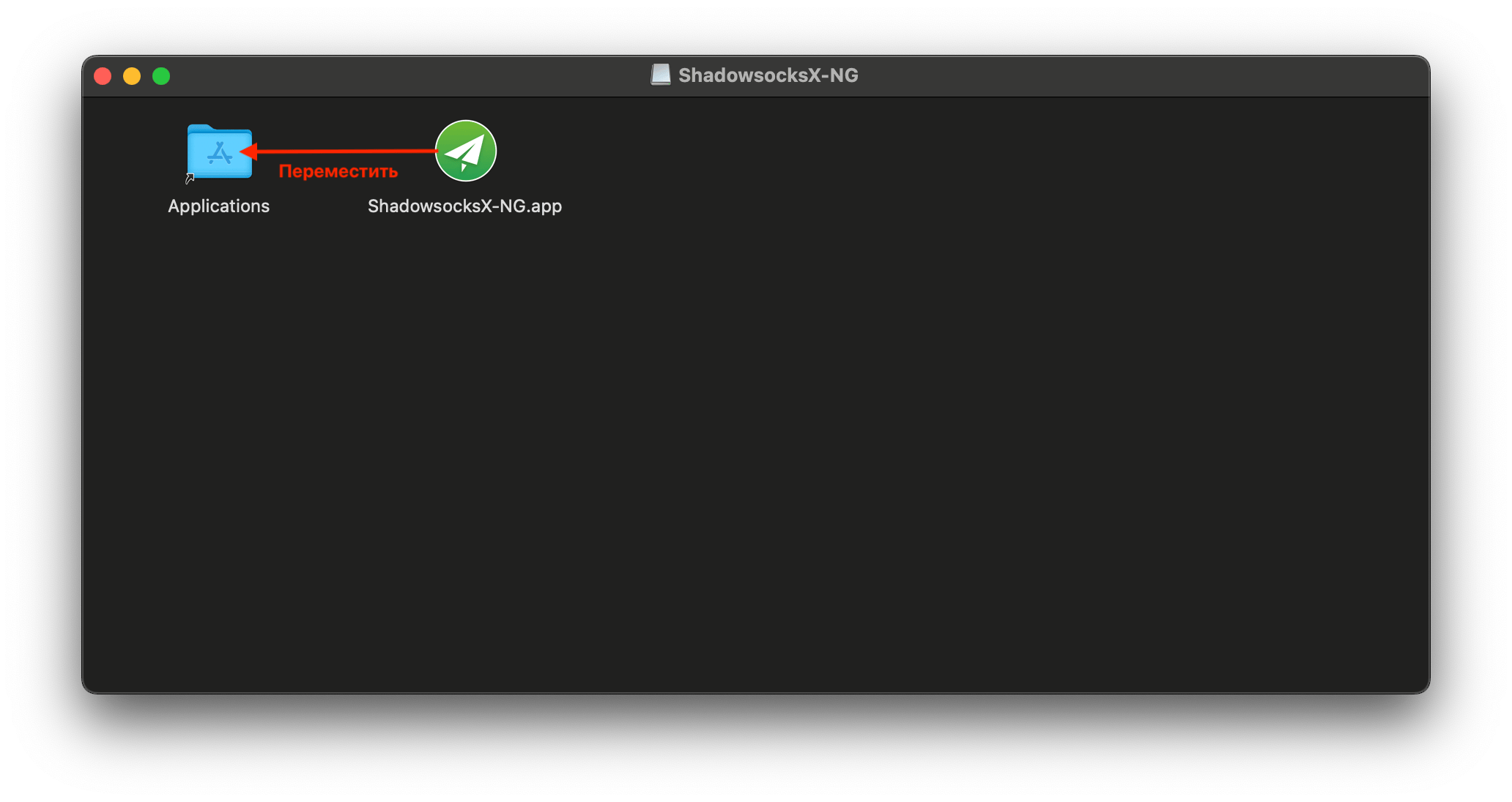 Откройте загруженный файл с приложением и перетащите его иконку в папку Программы.