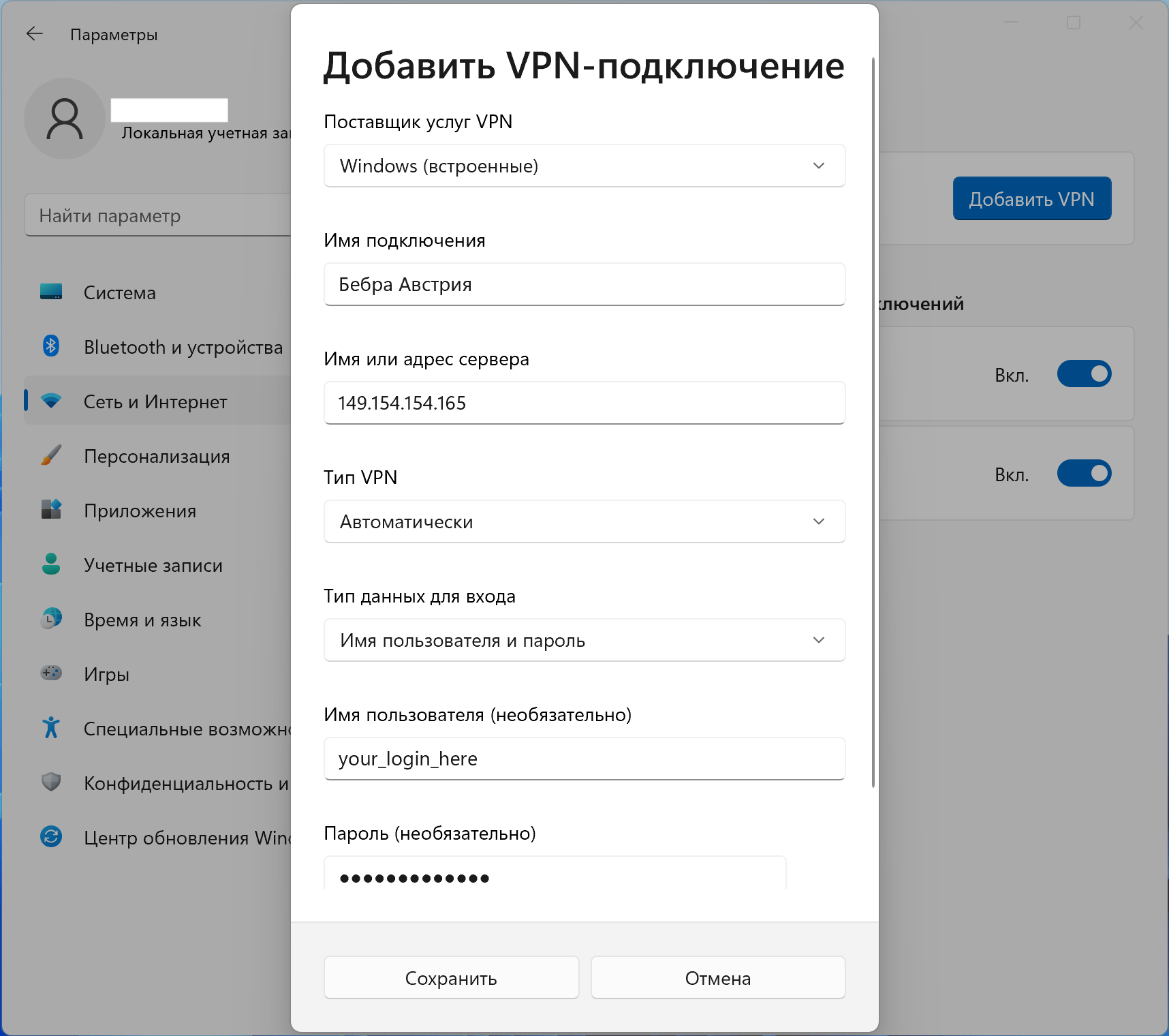 Скопируйте IP адрес сервера в нужной вам локации, а так же логин и пароль (логин и пароль одинаковые для всех стран).
